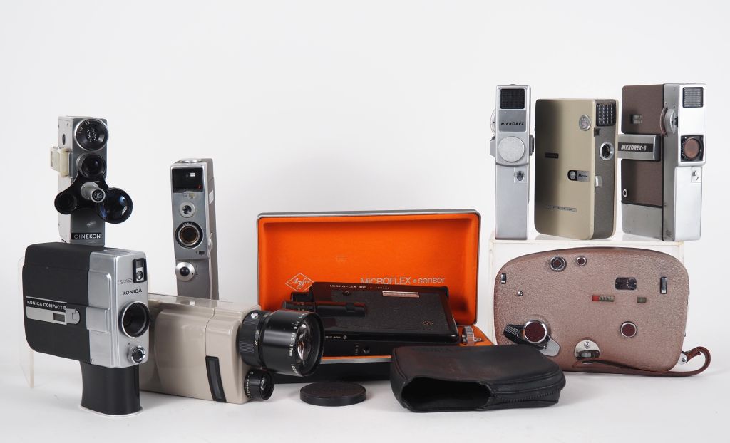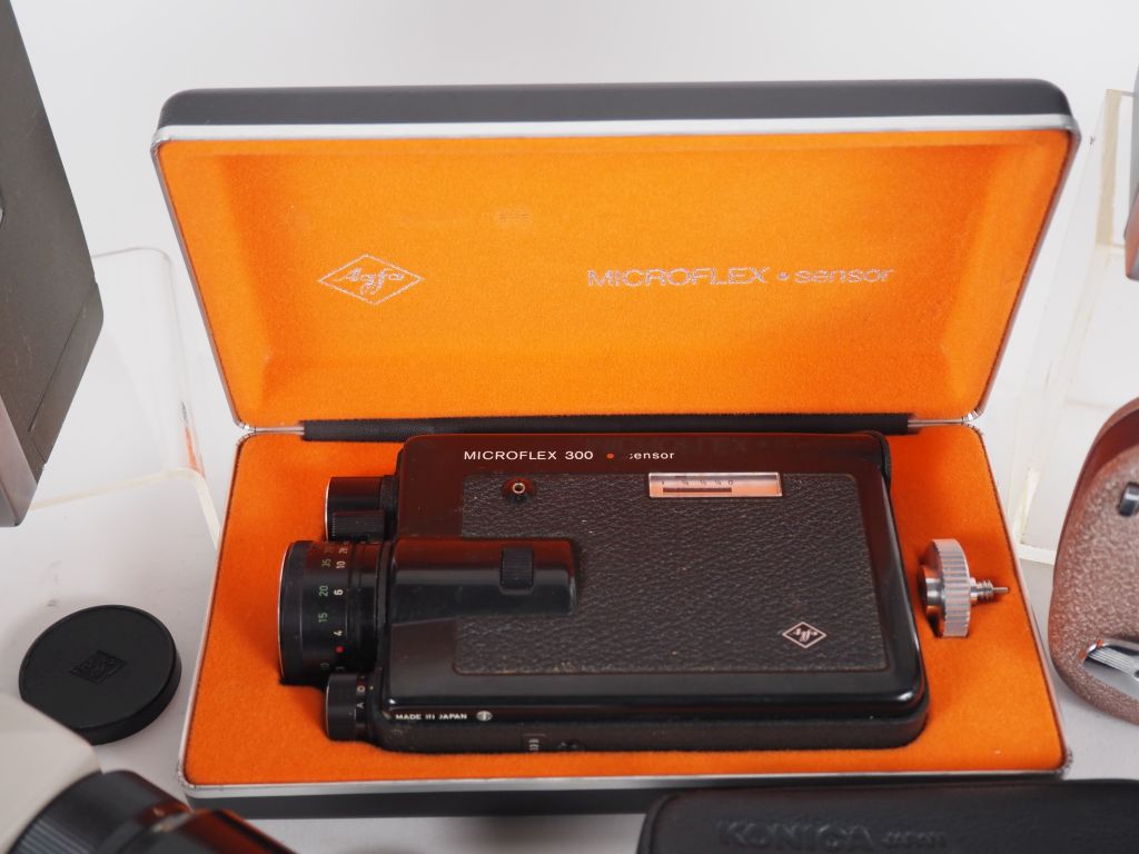 Lot de neuf caméras 8mm : - OLYMPUS PEN EE - KOPIL IC - RICOHMITE 88 E - NIKKOREX-8 - NIKKOREX-8F - CINEKON - CARENA GEVA 8 - AGFA MICROFLEX 300 dans son coffret - KONICA COMPACT 8