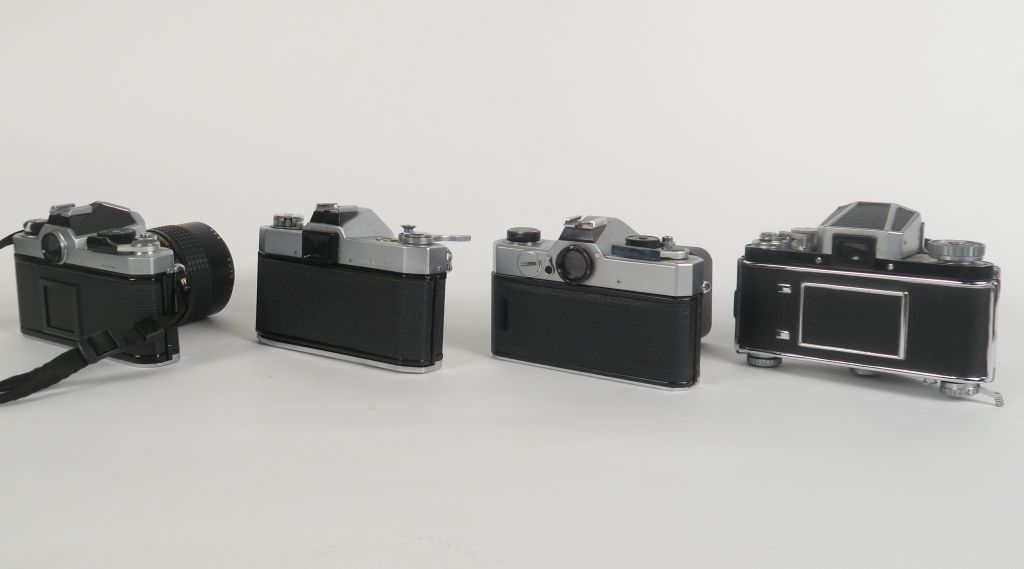 Lot de quatre appareils photographiques : - EXAKTA VAREX II B n°1118222 avec objectif 35/55 - FUJICA ST 901 n°6041263 avec objectif FUJI 1:1.4/f=50 mm - TOPCON UNIREX n°68088082 avec objectif 1:2/f=50 mm n°68093501 - NIKON FM n°3210822 avec objectif MAKINON 1:2.8/f=135 mm