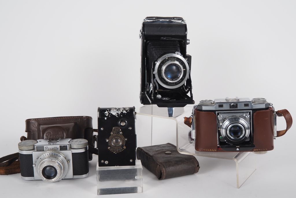Lot de quatre appareils photographiques : - PAXETTE PRONTOR-S avec étui - KINAX II - ZEISS IKON CONTINA avec étui - KODAK VEST POCKET avec étui