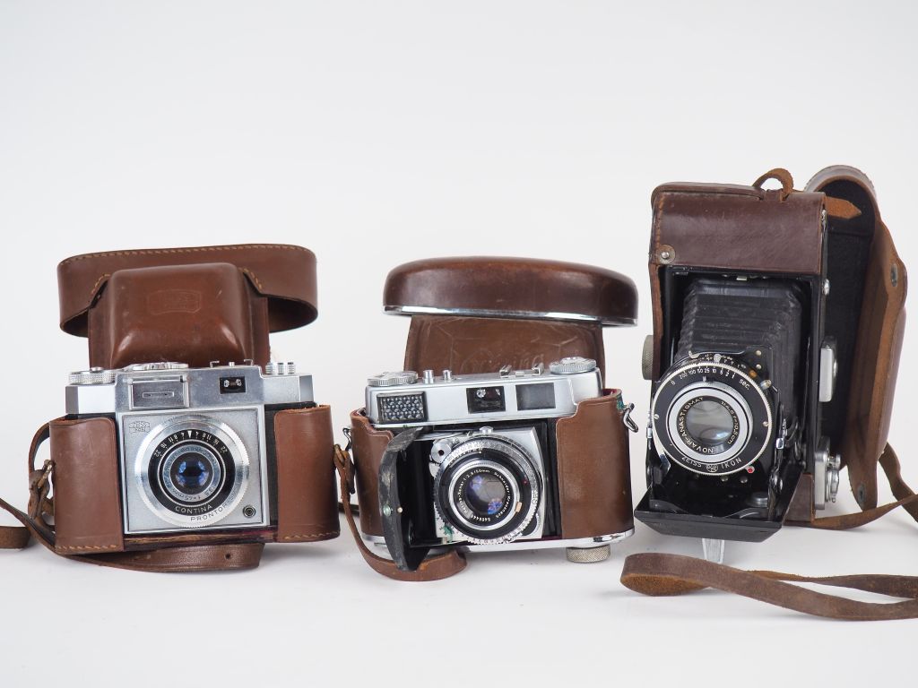 Lot de trois appareils photographiques : - ZEISS IKON CONTINA - ZEISS IKON Folding - KODAK RETINA 1B