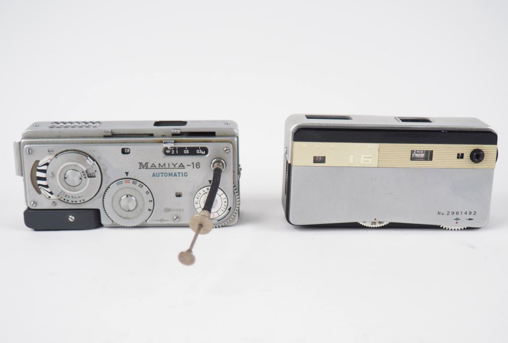 MAMIYA 16. Lot de deux appareils photographiques miniatures : - AUTOMATIC n°2464445 avec objectif SEKOR 1:2.5/25 - n°2961492 avec objectif SEKOR 1:2.8/25
