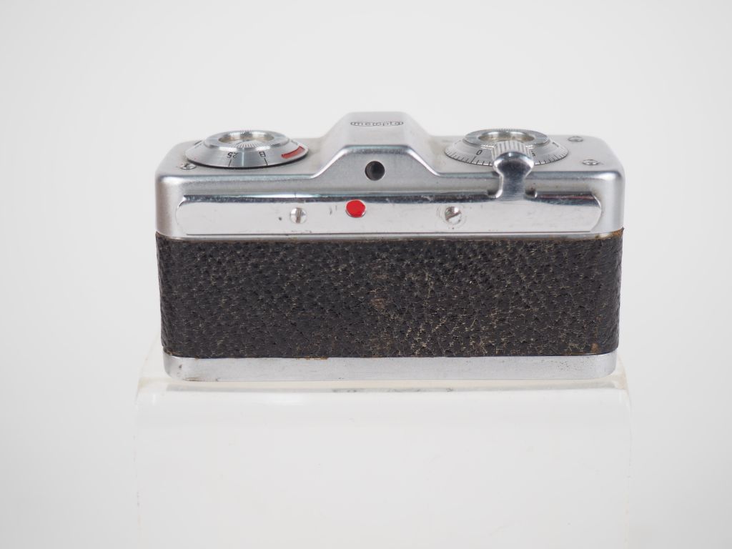 MEOPTA MIKROMA. Appareil photographique miniature n°438449 avec objectif MIRAR 1:3.5/20. (petit enfoncement, manque bouchon)