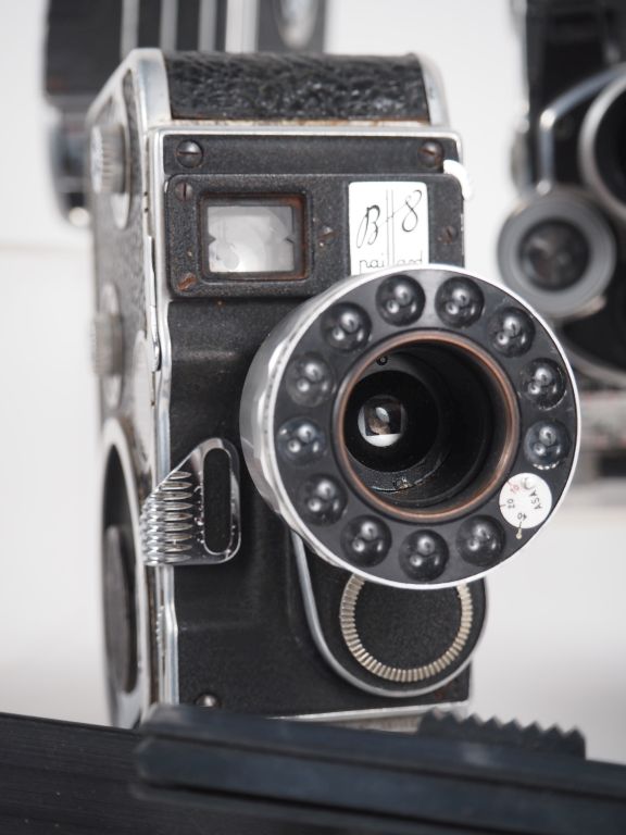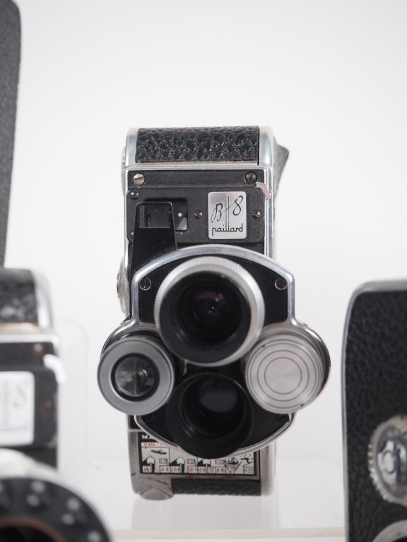 PAILLARD-BOLEX. Lot de six caméras 8mm : - B8 avec objectif SOM BERTHIOT SERVOCINOR 1:1.8/12.5 n°2001243 - C8 - C8S - B8 avec objectif YVAR 1:2.8/36 - L8 - B8