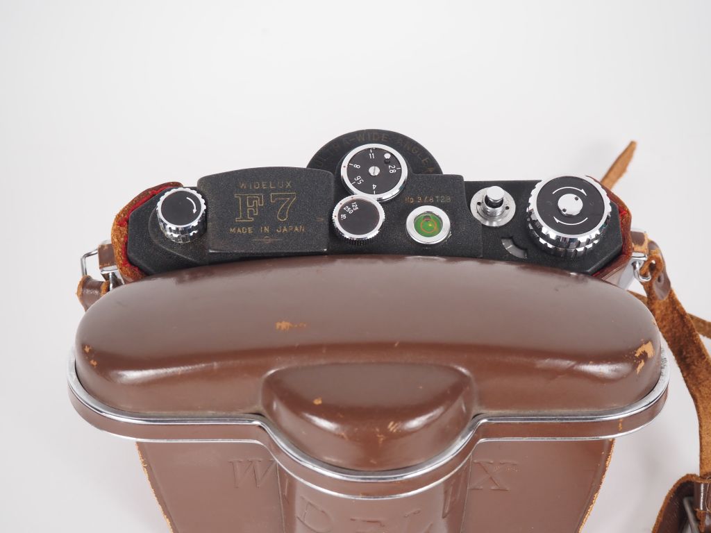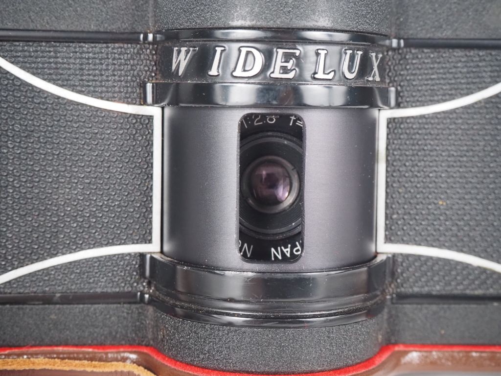PANON WIDELUX F7. Appareil photographique panoramique n°348728 avec objectif LUX 1:2.8/26 n°467475 et étui.