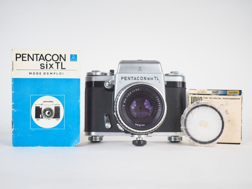 PENTACON VI TL. Appareil photographique n° 53116 avec objectif BIOMETAR F=80/1:2.8 n° 7344217 avec mode d'emploi et cache objectif. (état d'usage)