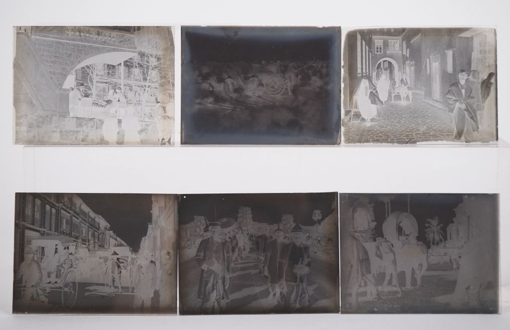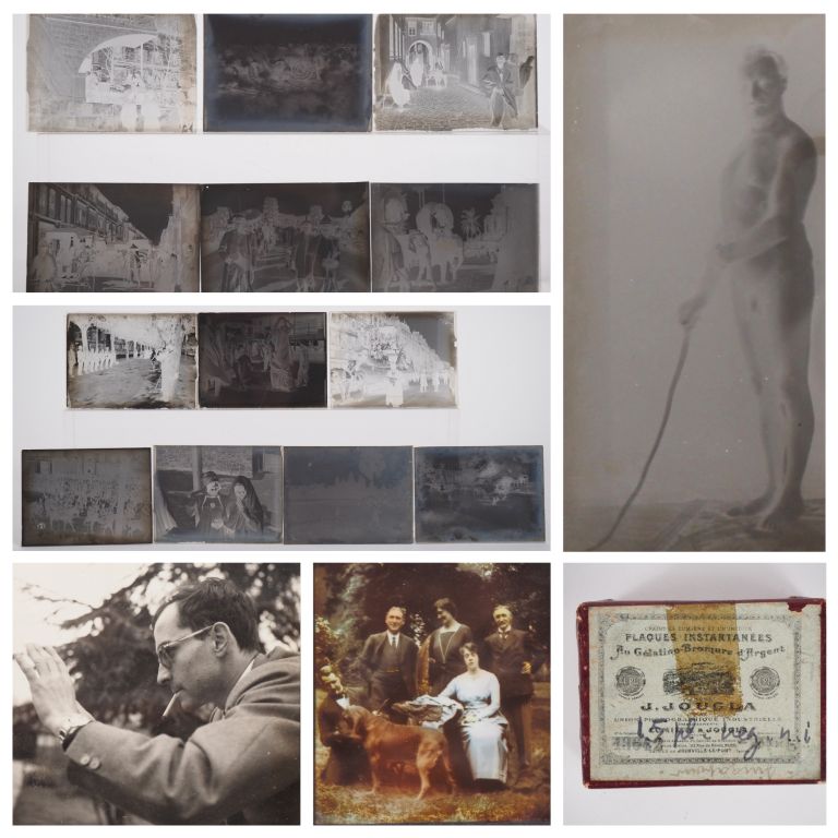PHOTOGRAPHIE. Lot comprenant : - quinze plaques photographiques 4,5 x 6 cm sur l'Asie et l'Afrique du Nord - une plaque photographique 'Homme nu de profil' - une plaque photographique en couleur 'Famille' et une photo 'Portrait de Jean-Luc Godard?'