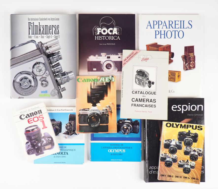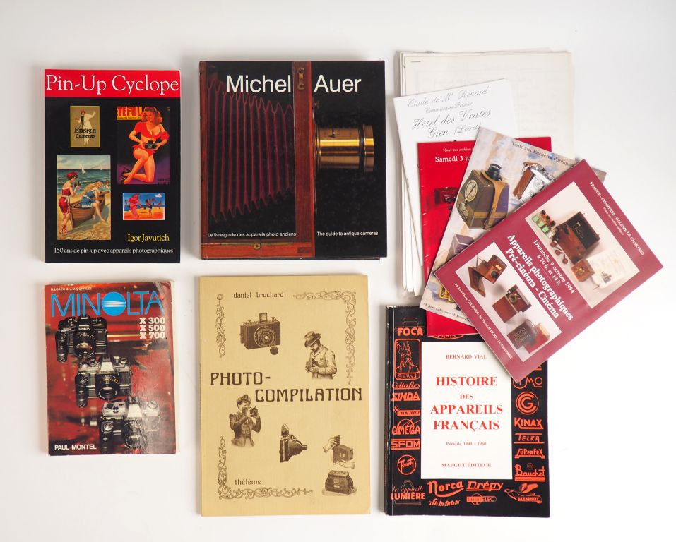 PHOTOGRAPHIE. Lots de 27 livres sur la photographie dont Foca Historica de Jean Loup Princelle, L'œil espion de Patrick Ghnassia, Histoire des appareils français par Bernard Viala... , de manuels d'utilisation et de catalogues de ventes aux enchères