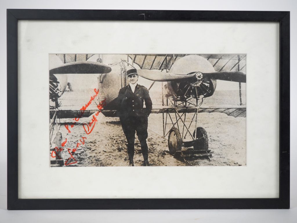 Photographie noir et blanc du boxeur aviateur Georges CARPENTIER. Dédicacée Dim. 16 x 28 cm