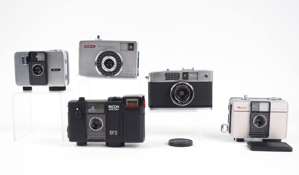 RICOH. Lot de cinq appareils photographiques : - AUTO HALF E - AUTO HALF n°55090 - CADDY - RAPID HALF n°15720 - AUTO HALF EF2 n°130654