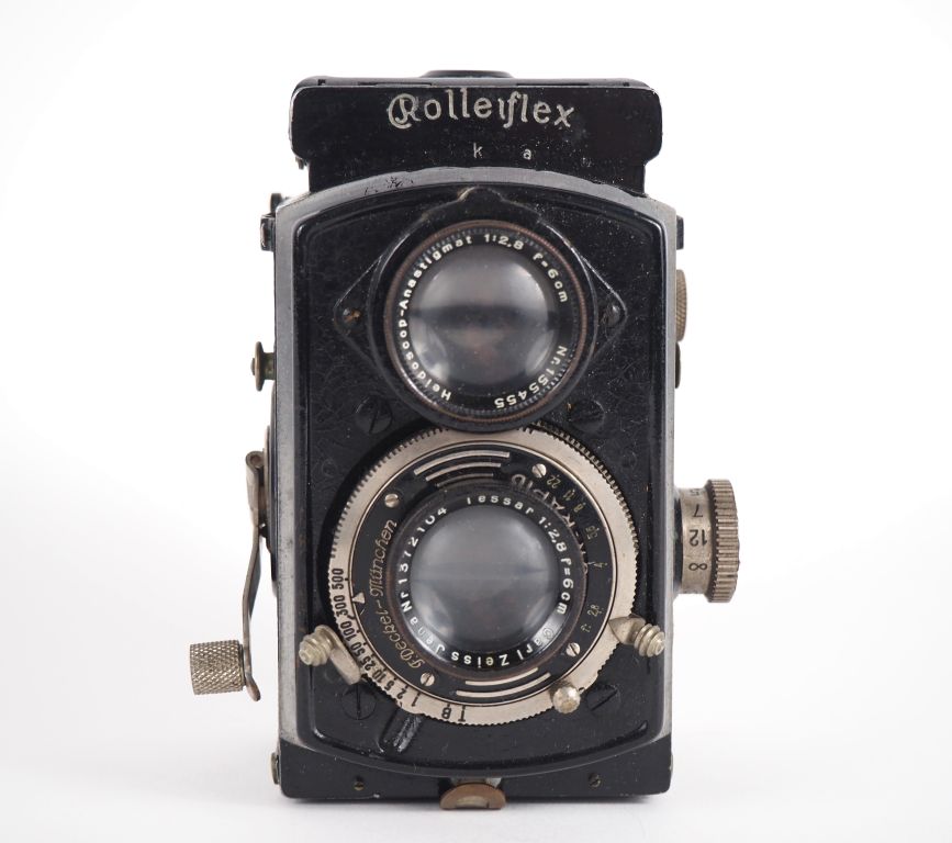 ROLLEIFLEX. Appareil photographique 6 x 6 n°155908 avec objectifs HEIDOSCOP 1:2,8/6 n°155455 et TESSAR 1:2,8/6 n°1372104. Etat d'usage.