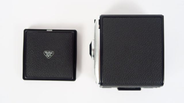 Rolleiflex : SL66 N°21903 , objectif Planar 2,8/80 N°5361929 capuchon de visée avec cellule, dos Cond : Etat de neuf