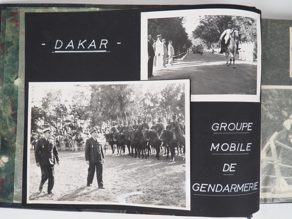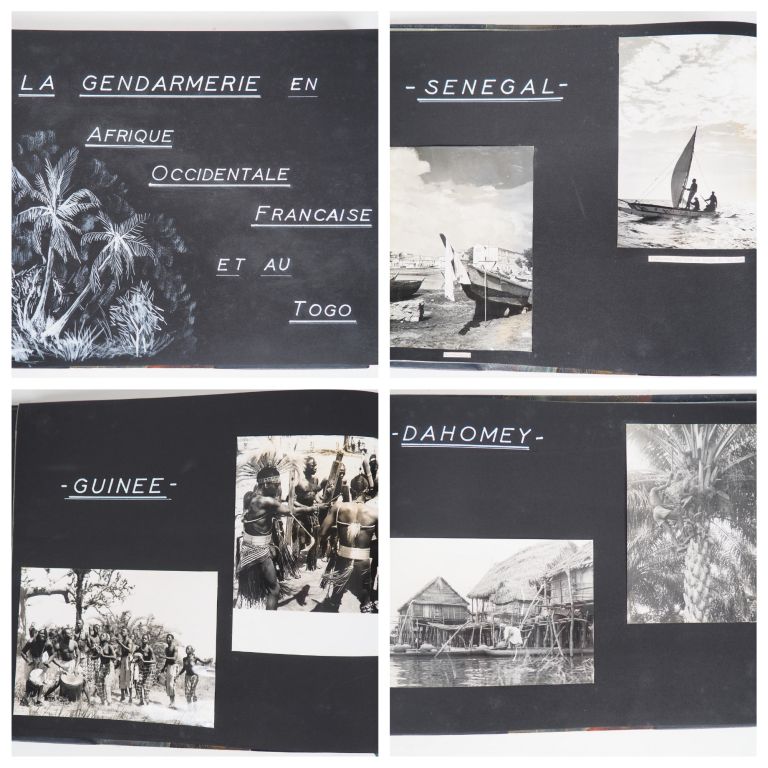 Superbe album de 218 photographies noir et blanc titré "la gendarmerie en Afrique occidentale francaise et au Togo. L'album contient des photos ethnographiques et des activités de la Gendarmerie à Dakar ville au Sénégal, en Mauritanie, au Soudan, en Guinée, en Côte d'Ivoire, en Haute Volta, au Niger, Togo et Dahomey.