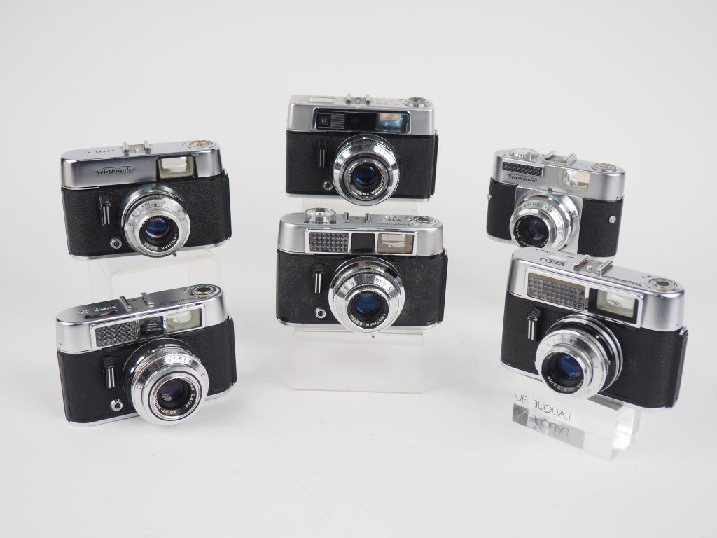 VOIGTLANDER. Lot de six appareils photographiques : - VITO CSR n°853601 avec objectif COLOR-LANTHAR 1:2.8/50 - VITO C n°218400 avec objectif LANTHAR 1:2.8/50 - VITO CL n°218400 avec objectif COLOR SKOPAR 1:2.8/50 - VITO BL avec objectif COLOR SKOPAR 1:2.8/50 - VITO AUTOMATIC I n°292290 avec objectif LANTHAR 1:2.8/50 - VITO CD avec objectif LANTHAR 1:2.8/50