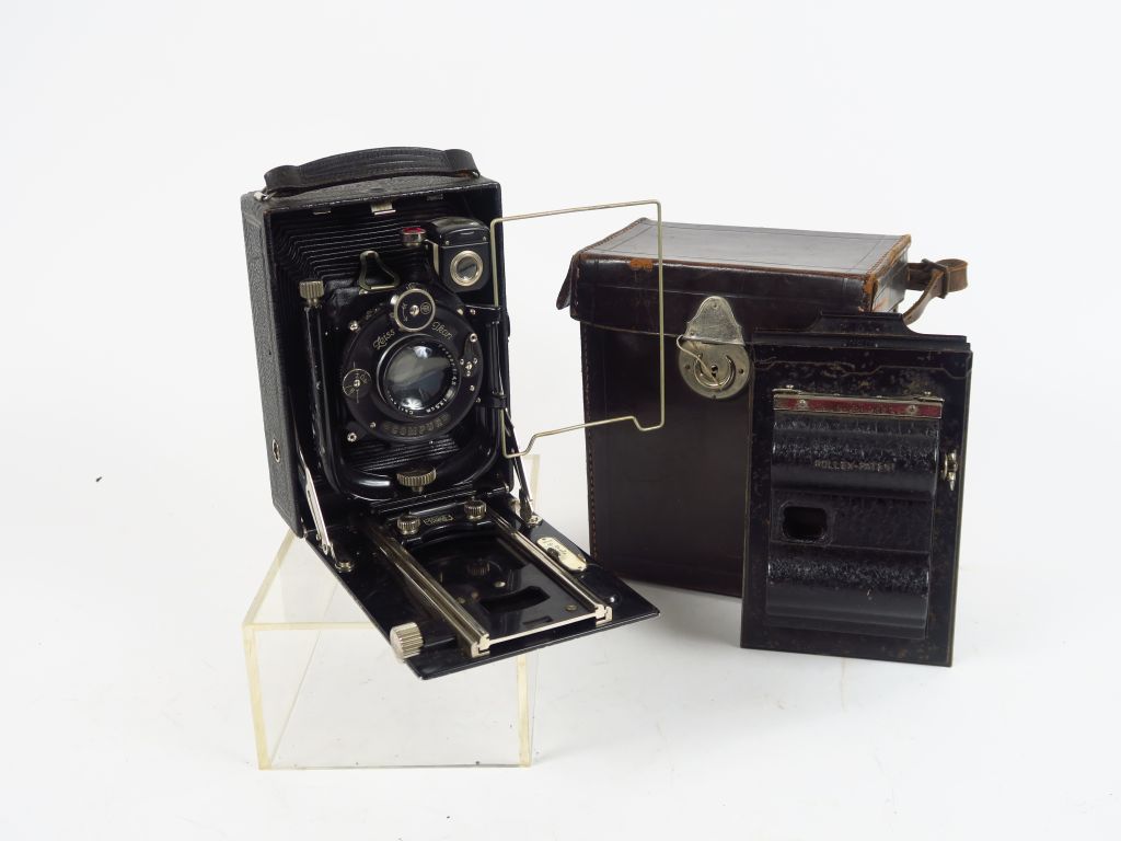ZEISS. Folding 9x12. Objectif Tessar 4,5/13,5 cm. Obturateur Compur. Un dos Rollex pour film 6x9. Etui.