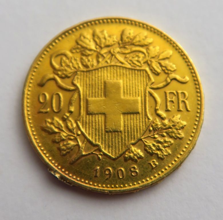 1 pièce de 20 fcs Suisse 1908 B