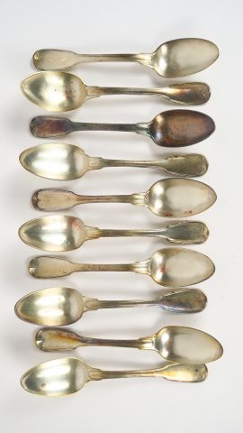 10 grandes cuillères en argent XVIIIe modèle au filet. 842 g