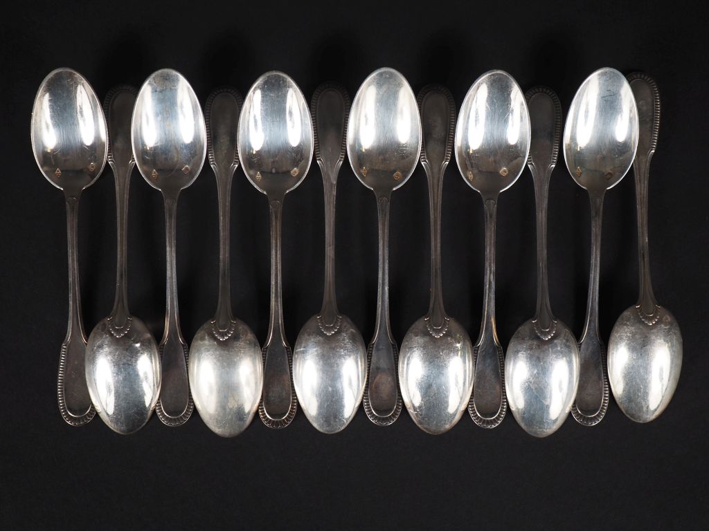 12 cuillères à café en argent, poinçon Minerve, modèle à godrons Poids : 227 g
