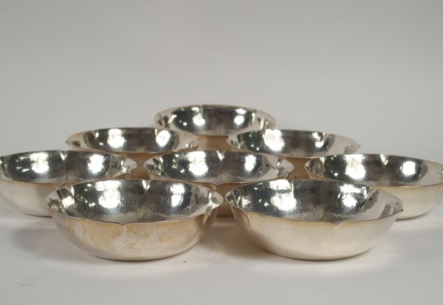 8 coupelles en argent martelé étranger. Poids: 1 208 gr (LP : 10889)