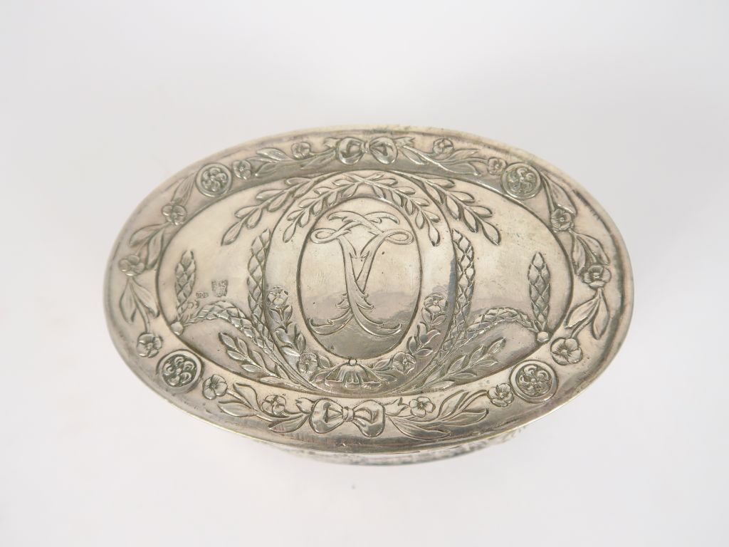 Boite ovale de style Louis XVI en argent étranger et vermeil. Poids. 150 gr