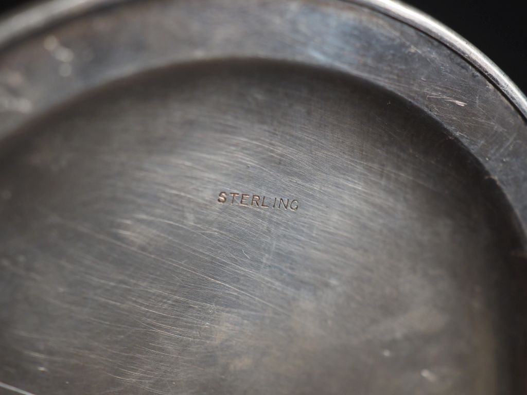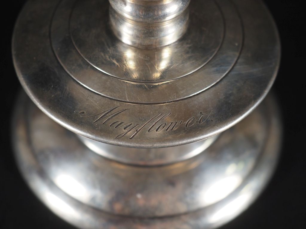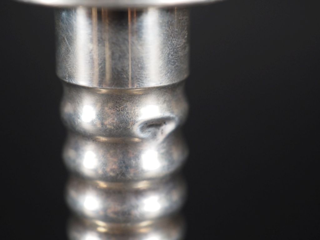 Bougeoir de toilette en argent anglais de style moderniste, fût annelé, base circulaire. Poinçonné. Poids tel. 224 g. H. 14 cm.