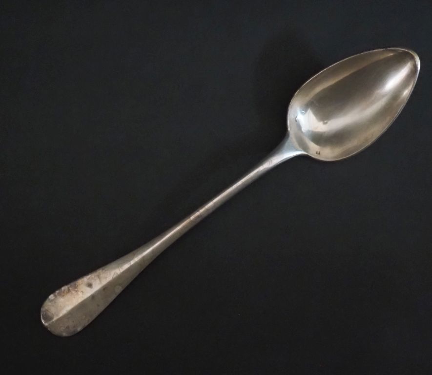 Cuillère à ragoût en argent 925, poinçon Minerve, modèle à cartouche monogrammé. Long. 27 cm Poids. 80 g