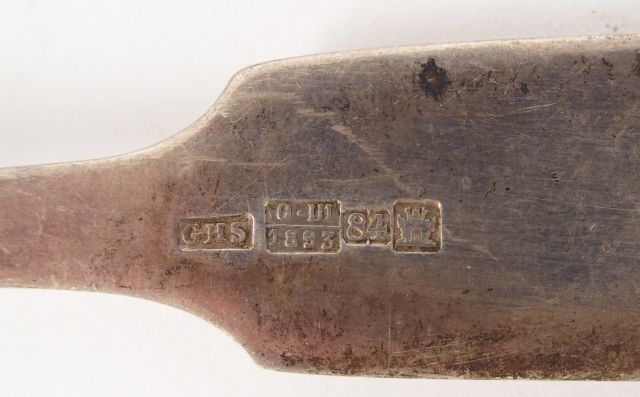 Cuillère à ragout en argent russe, modèle à coquille monogrammé