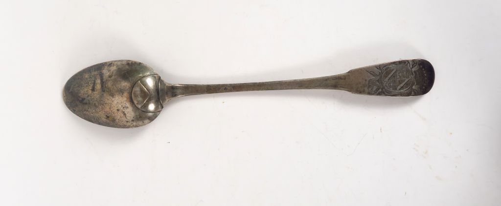 Cuillere à ragout XVIIIème en argent, modèle armorié. Poids. 168 gr
