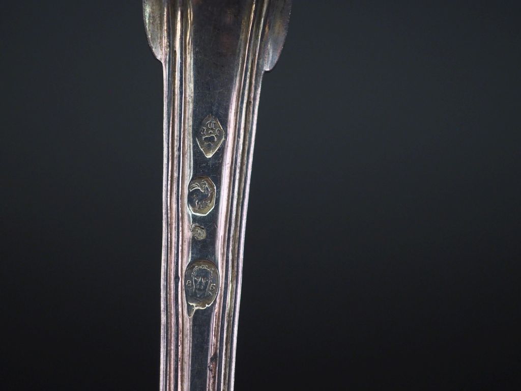 Cuillère à saupoudrer fin XVIIIème - début XIXème en argent, poinçon au 1er Coq, modèle à filet. Long. 20 cm Poids. 90 g