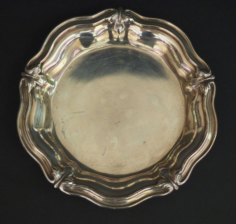 Dessous de bouteille en argent, poinçon Minerve, modèle à filet agrémenté de feuillage. M.O : H.S Diam. 15,3 cm Poids. 133 g