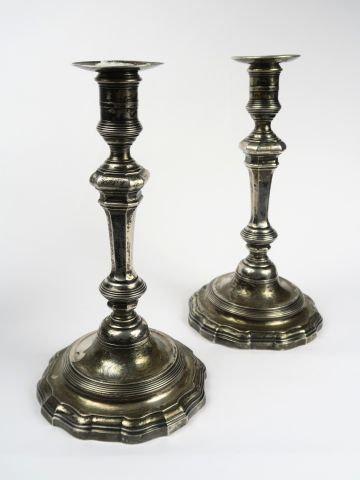Deux bougeoirs en argent XVIIIe. Paris. Poids : 1240 g