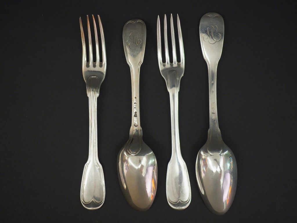 Deux différents grands couverts XVIIIème en argent. Monogrammés. Poids. 349 g