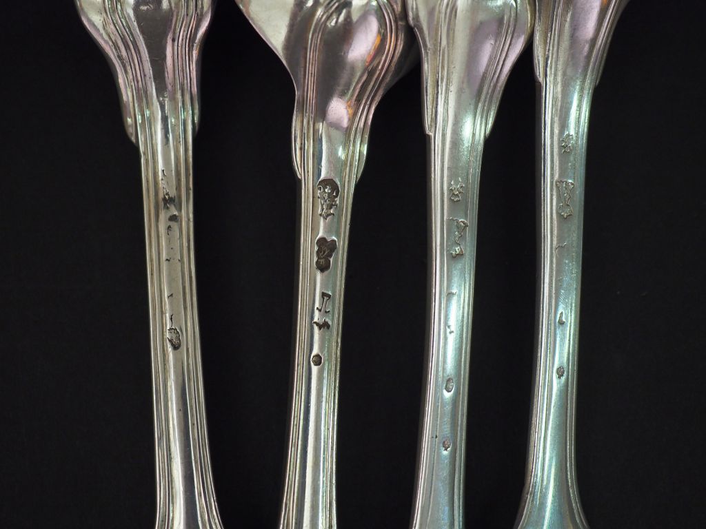 Lot de Deux différents grands couverts XVIIIème en argent. Monogrammés. Poids au prix de 100 à 150 € en vente aux enchères par l'hôtel des ventes Primardeco