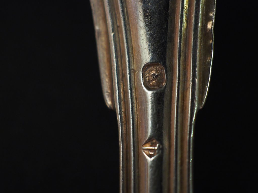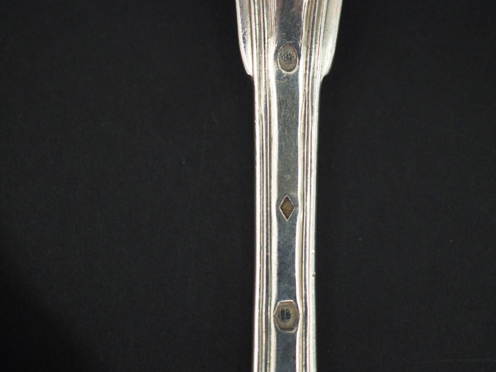 Ensemble comprenant sept grandes cuillères et quatre grandes fourchettes en argent, poinçons dépareillés, modèles à filet. Monogrammés ou armoriés. Poids. 907