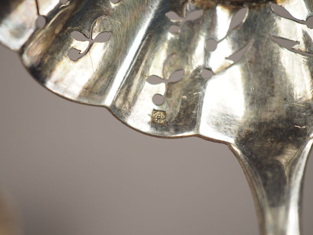 Ensemble comprenant : - une cuillère à ragoût en argent, poinçon Minerve. - un couvert de style Louis XV en argent, poinçon Minerve, modèle feuillagé. - deux cuillères à saupoudrer, l'une en argent, poinçon Minerve, l'autre en métal argenté Christofle. - une pièce de service à hors d'œuvres en argent et ivoire, poinçon Minerve. Poids tel. 342 g