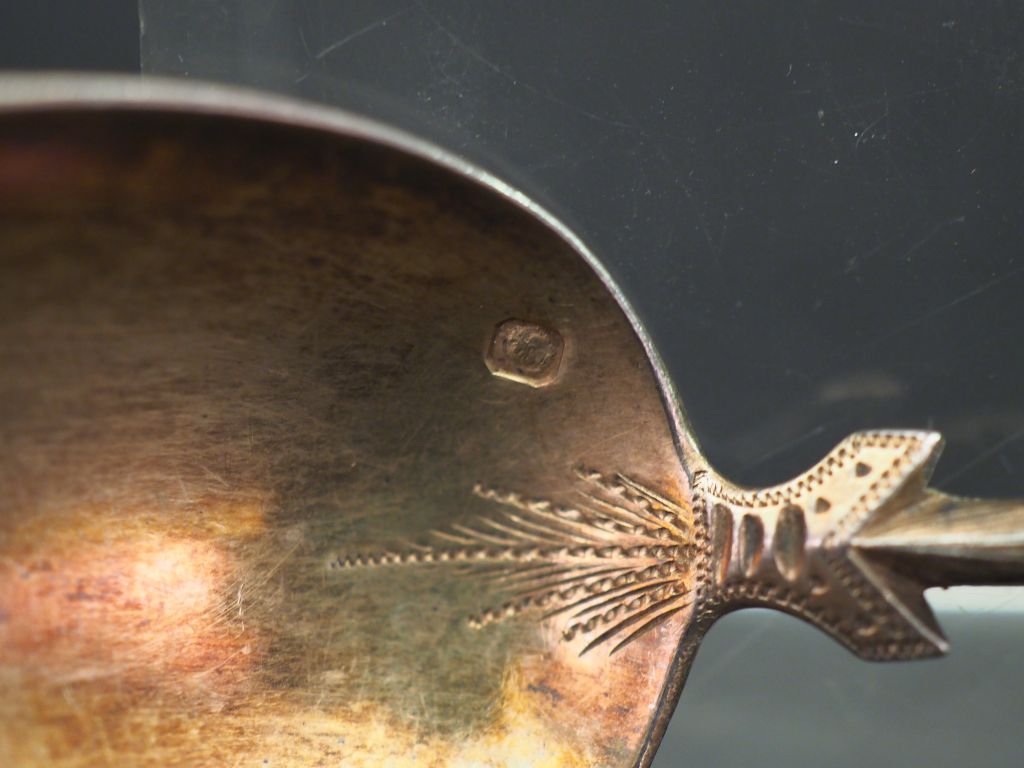 Ensemble comprenant : - une cuillère à saupoudrer de style Louis XVI en argent, poinçon Minerve, à décor de cartouche. M.O. JG Poids. 61 g - une cuillère à cocktail en argent et vermeil, poinçon Minerve. Poids. 32 g