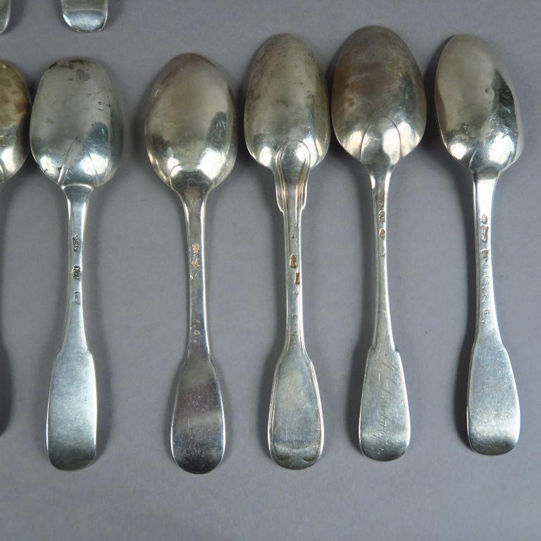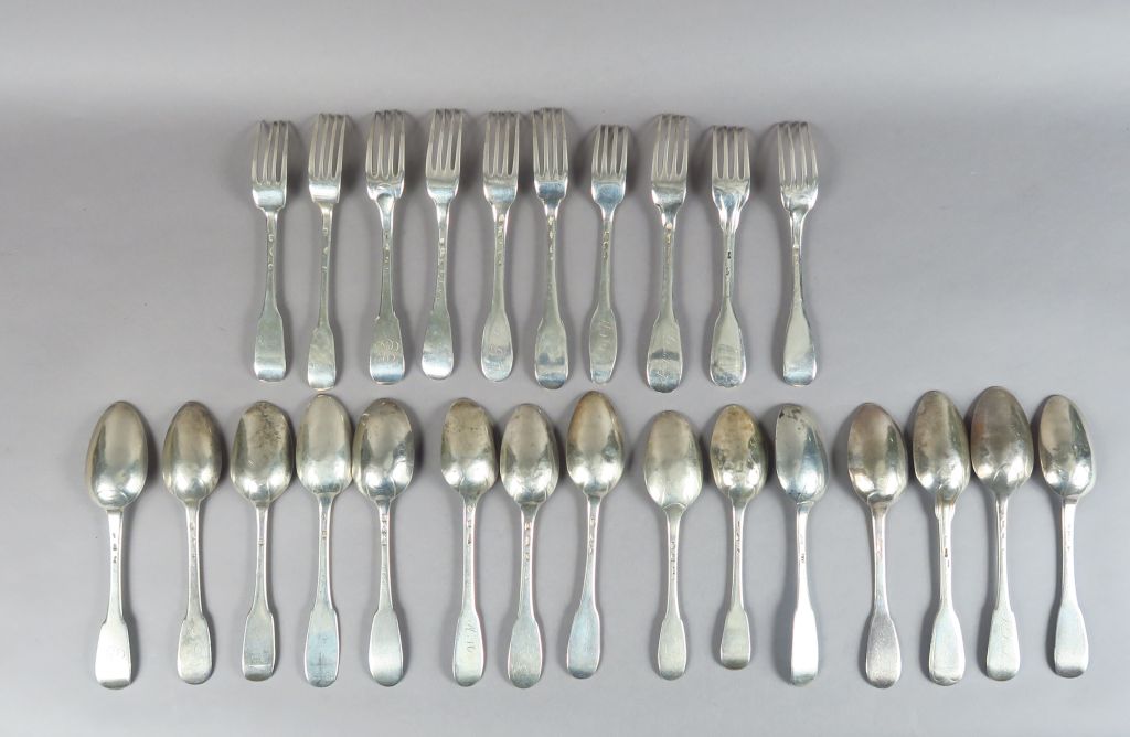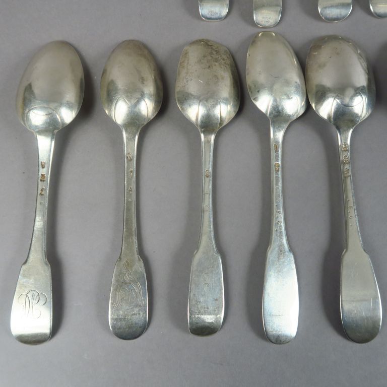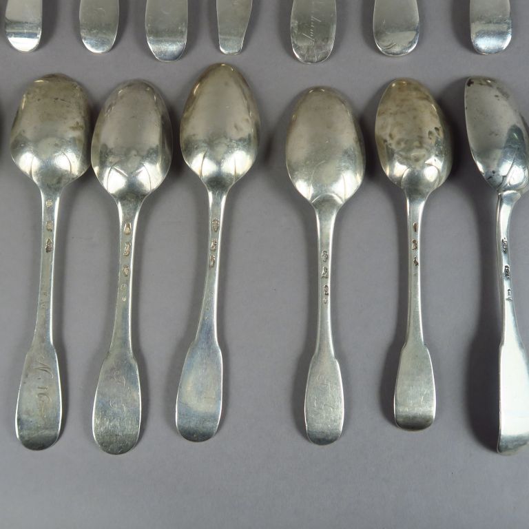 Ensemble de couverts dépareillés XVIIIème en argent. Poids. 1628 g (certains monogrammés)