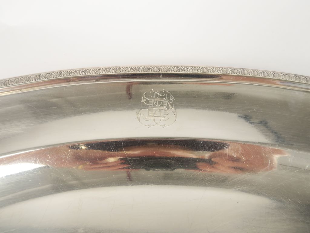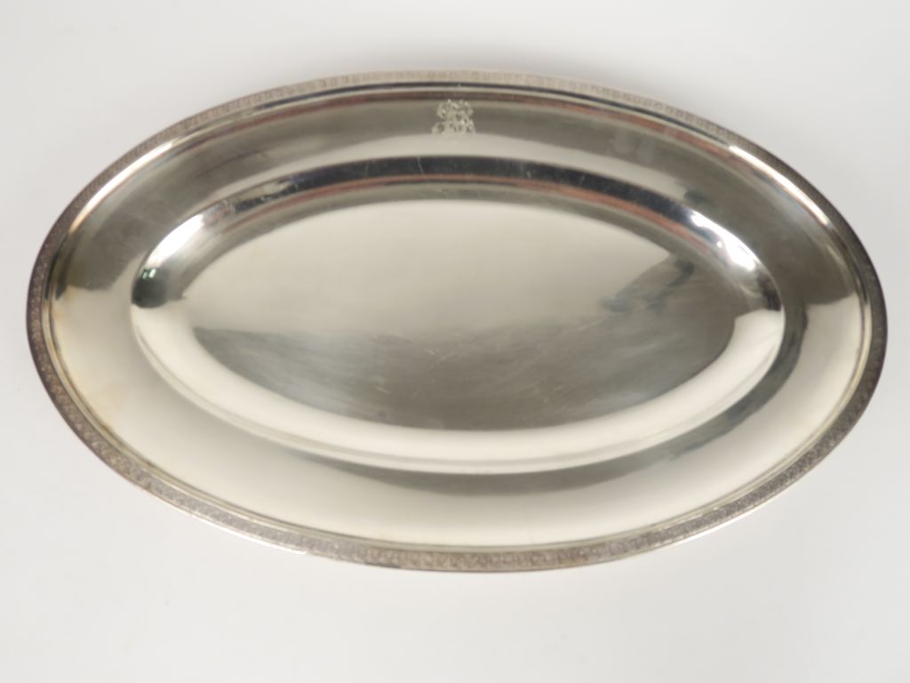 Grand plat ovale de style Empire en métal argenté.