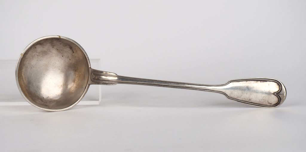Grande louche en argent, poinçon Minerve, modèle à filet. Long. 35,5 cm Poids. 270 g
