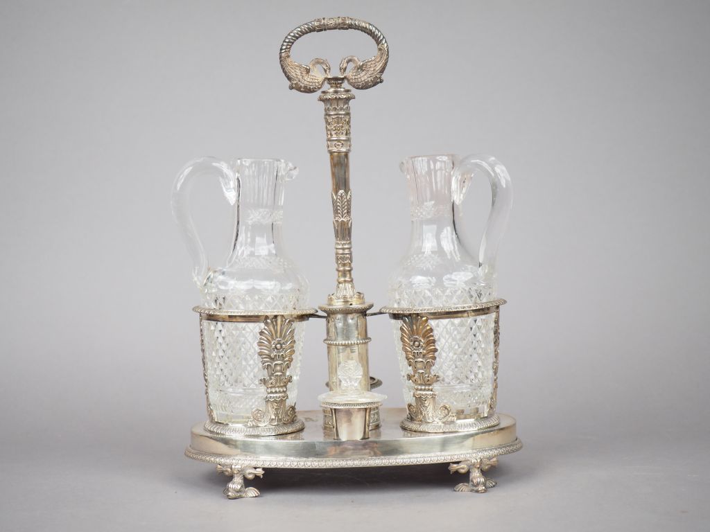 Huilier-vinaigrier Restauration en argent, poinçon Vieillard. Avec une paire de flacons. Poids. 861 g (manque un bouchon)