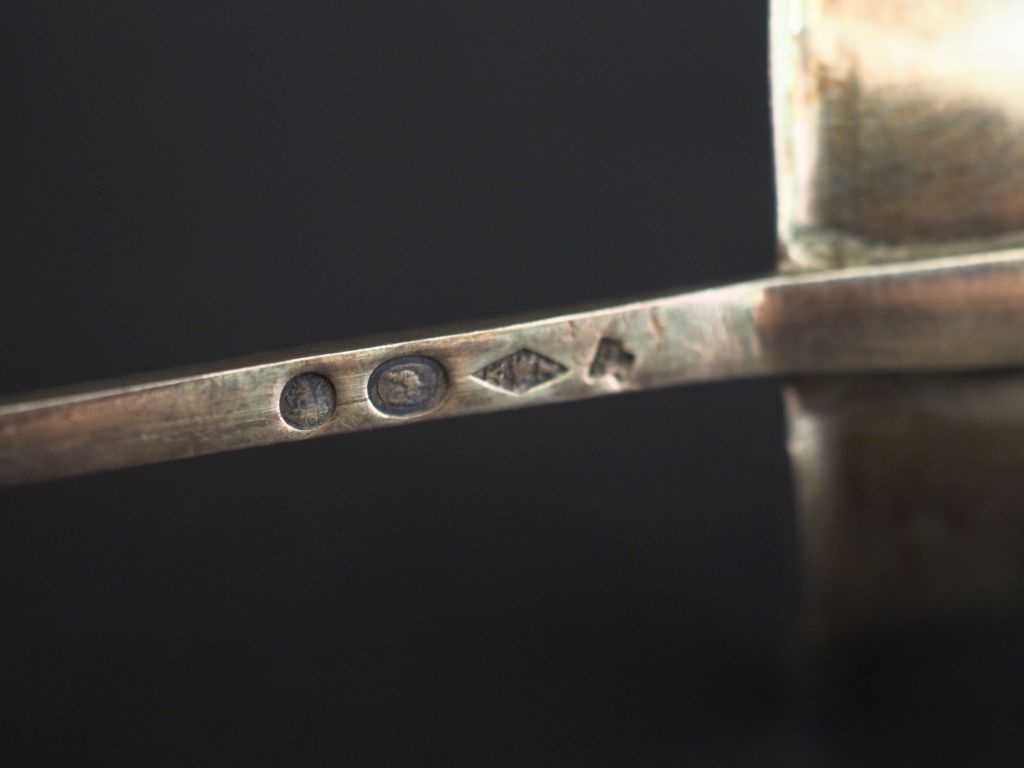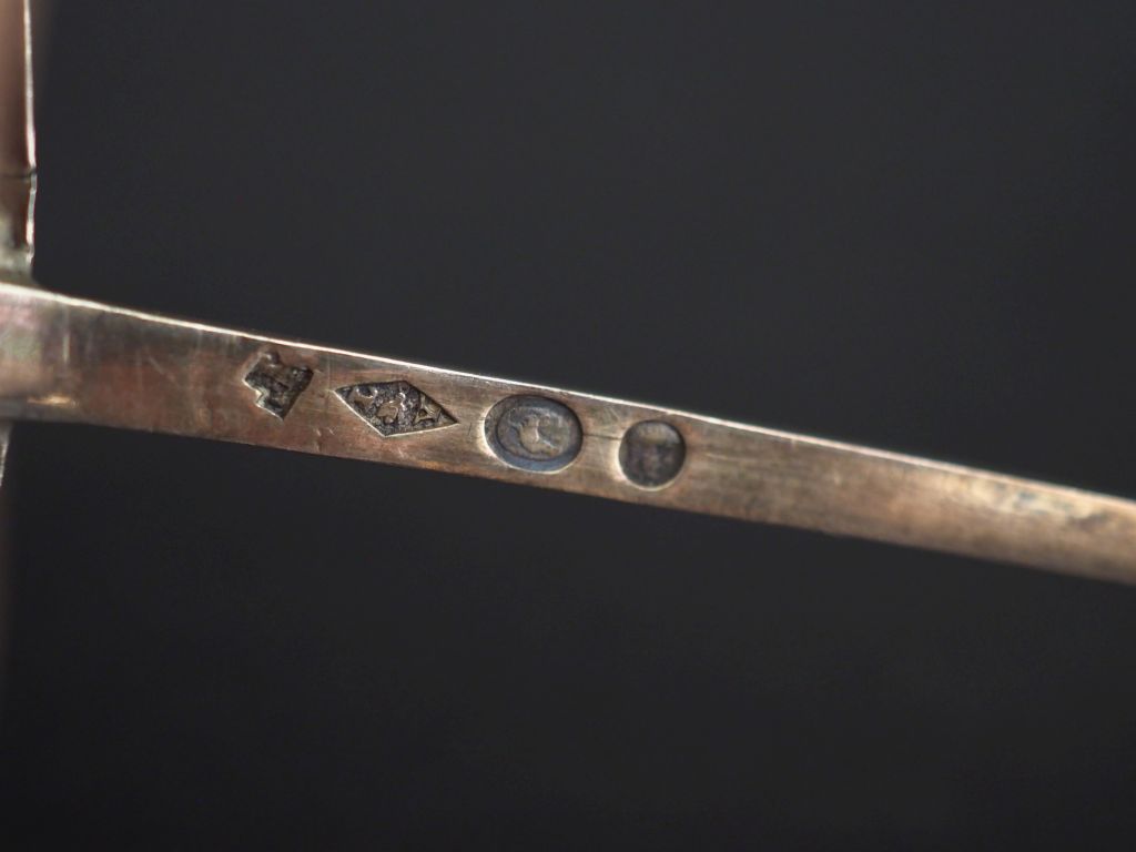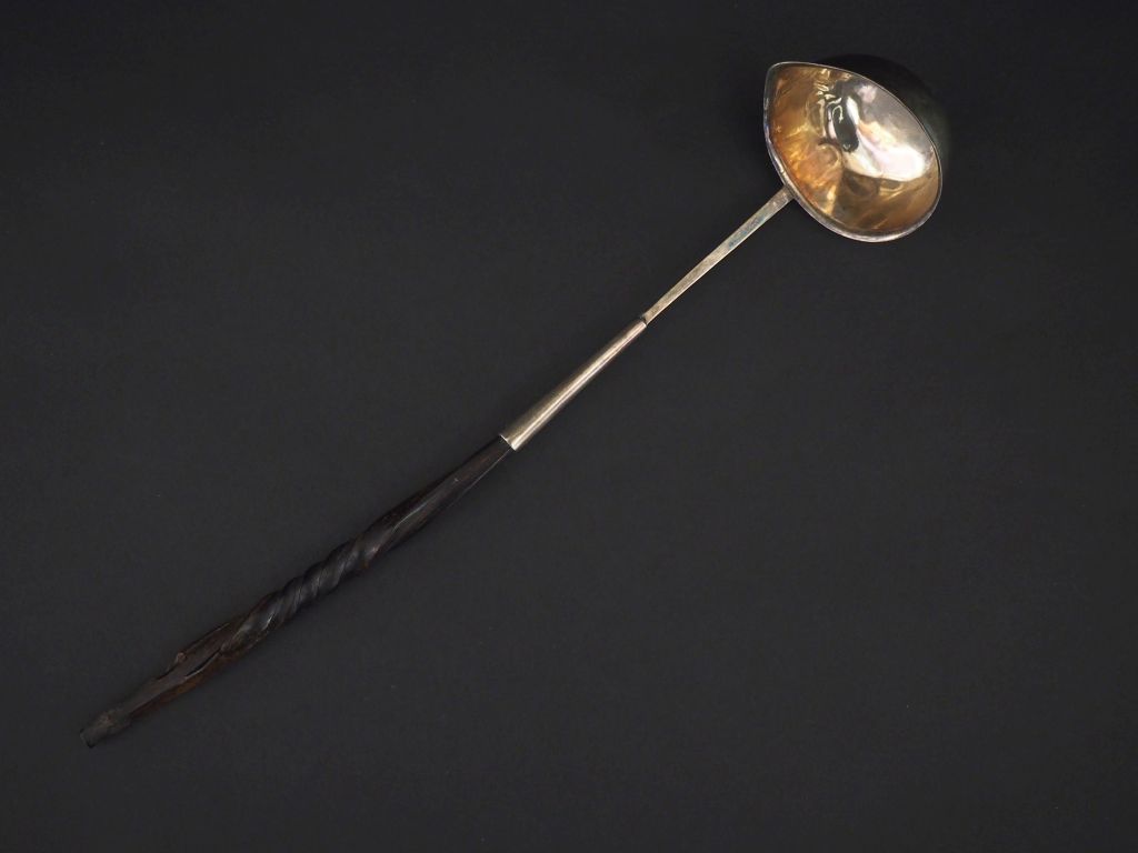 Louche à punch en argent, poinçon au Coq, manche en corne. Long. 31,5 cm Poids tel. 46 g (petits enfoncements)