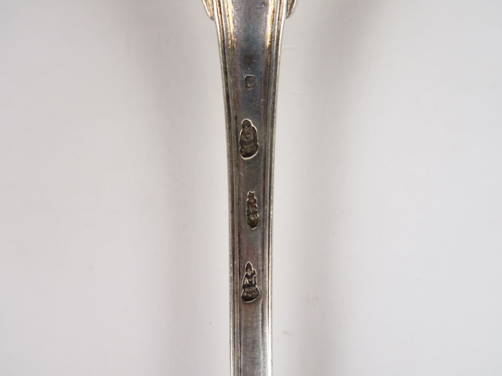 Lot de Louche en argent XVIIIème, modèle à filet, monogrammée. Poids. 290 gr au prix de 100 à 200 € en vente aux enchères par l'hôtel des ventes Primardeco
