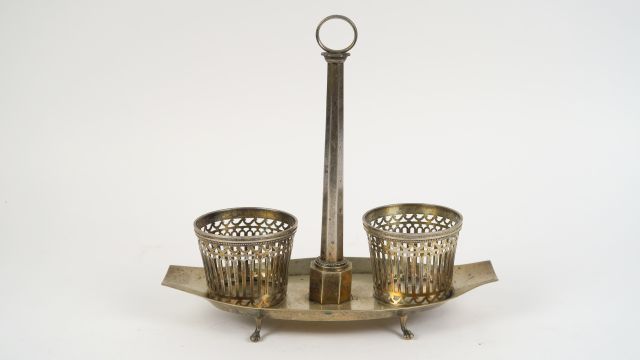 Monture d'huilier vinaigrier Restauration en argent, poinçon au 1er coq. 524g