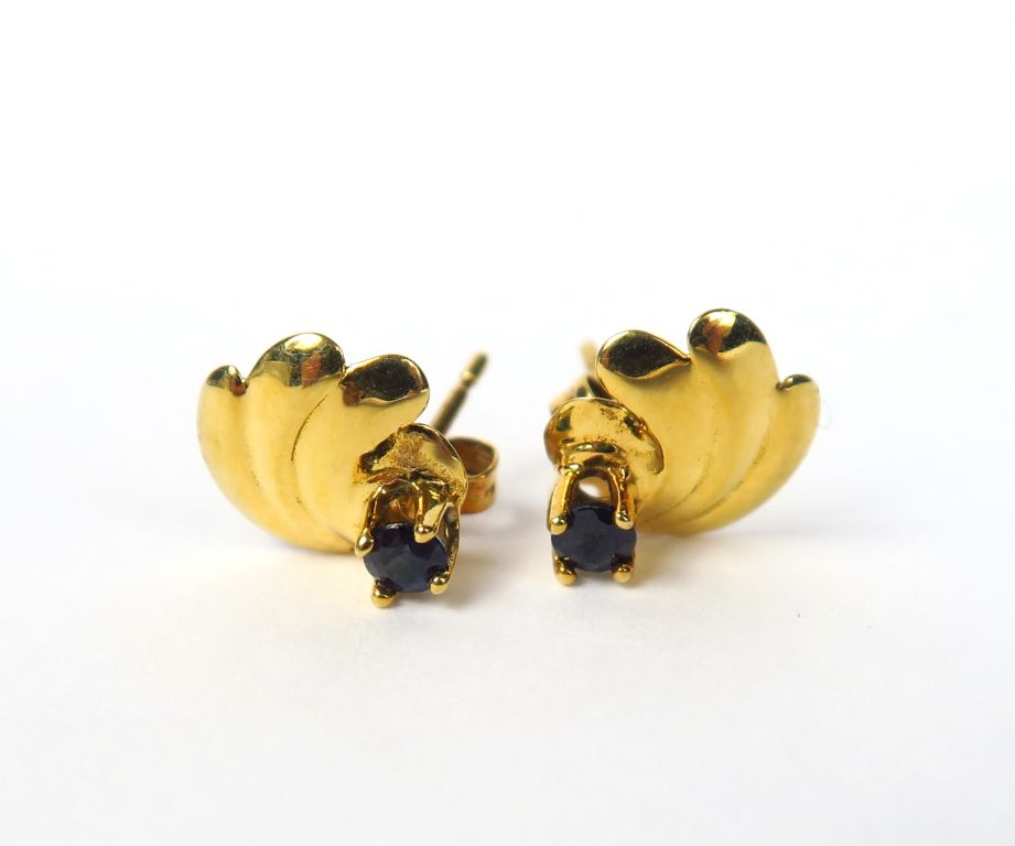 Paire de perce-oreilles en or jaune et saphirs. Poids tel : 1,2 g