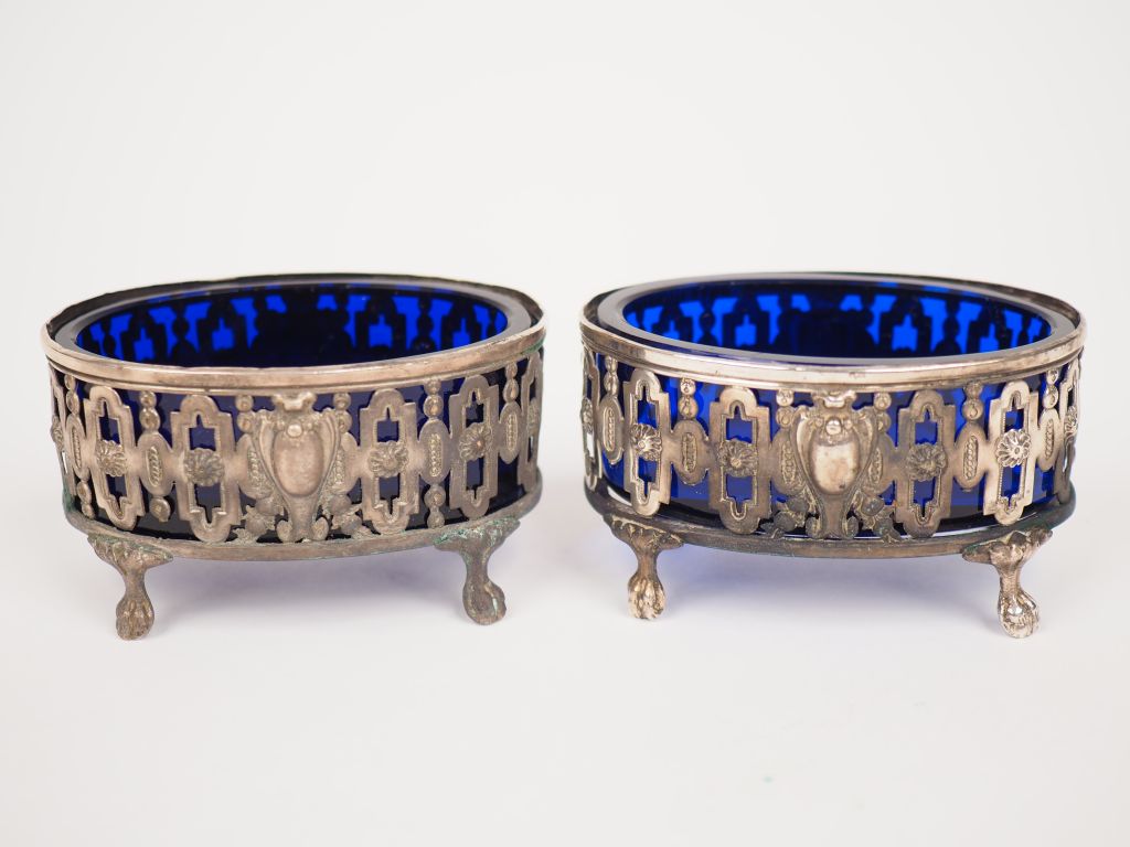 Paire de salerons de style Louis XVI en argent, à décor d’arcatures et de cartouches. Poids. 66 g