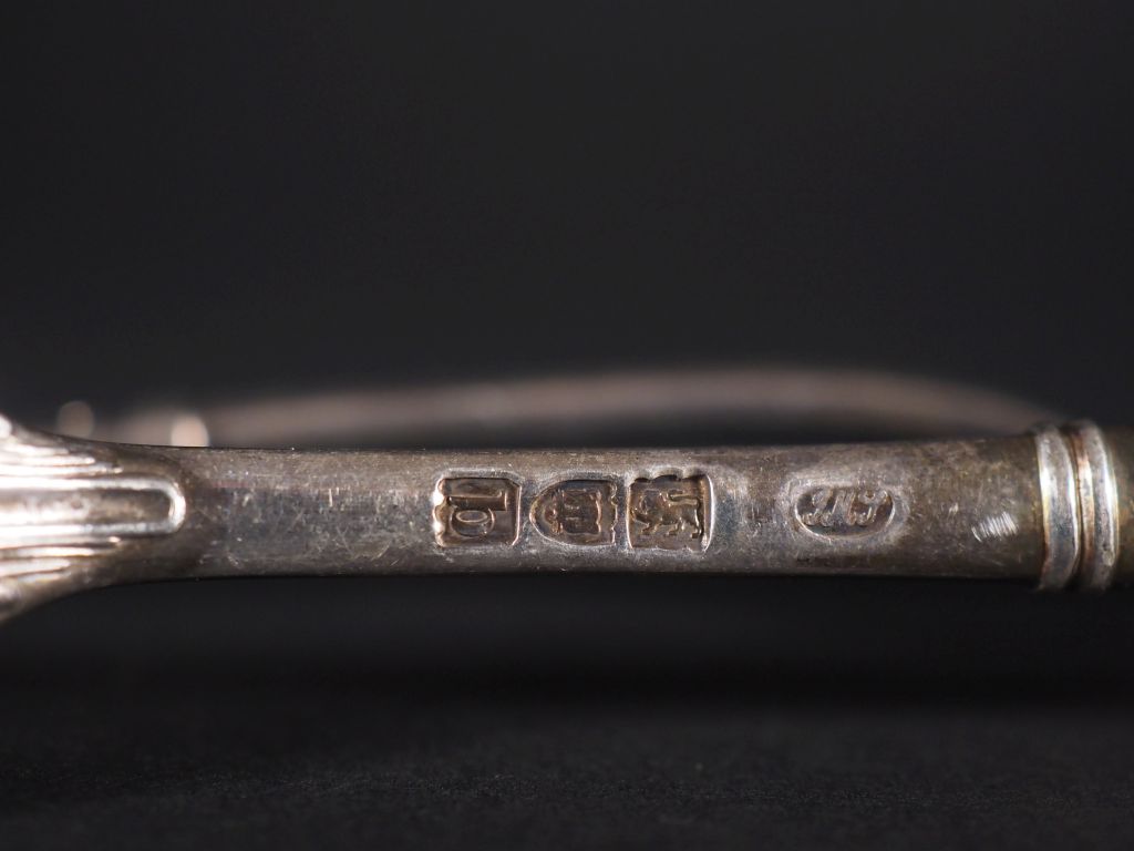 Partie de ménagère en argent anglais 925 à décor de coquille comprenant : 6 grands couverts Poinçonnée Poids : 1212 g