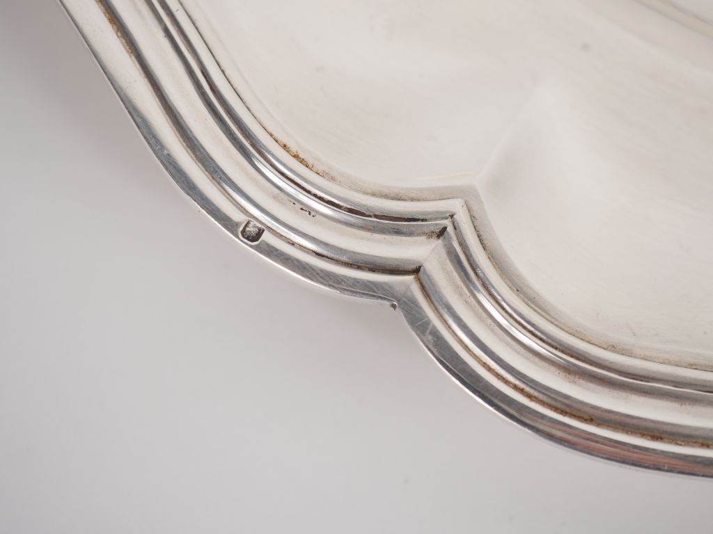 Plat rond de style Louis XV en argent 925, poinçon Minerve, modèle à filets. Bord chantourné. M.O : E. Puiforcat Diam. 35 cm Poids. 1046 g