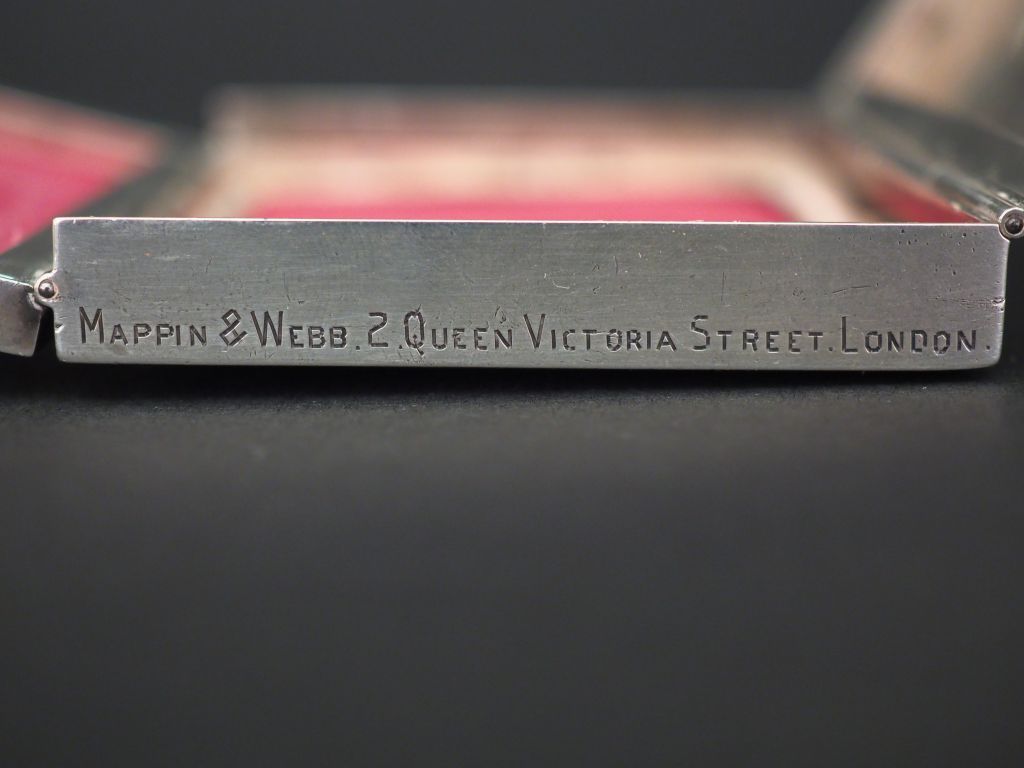 Porte-photo articulé à trois brins en argent anglais, en forme de petite boite. M.O : Mappin Webb Dim. fermé : 7,4 x 5,9 cm Dim. ouvert : 7,4 x 17,1 cm Poids. 131 g
