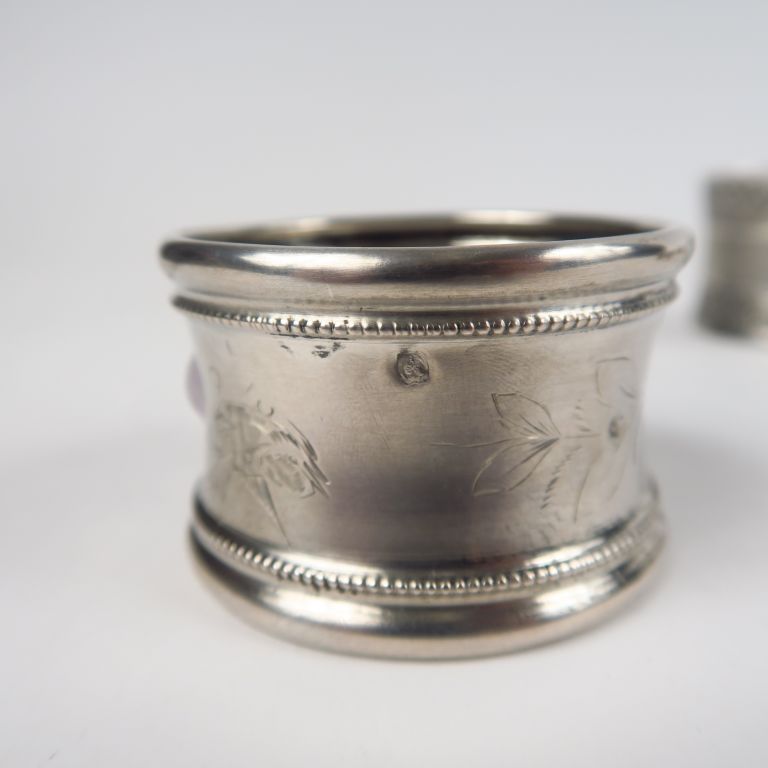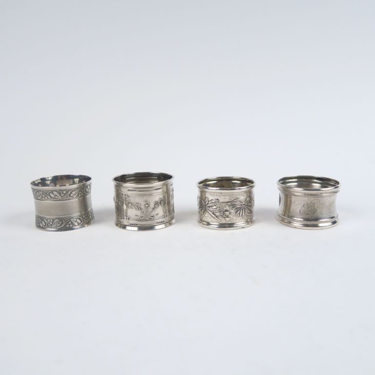 Quatre différents ronds de serviette en argent. Poids. 90 g
