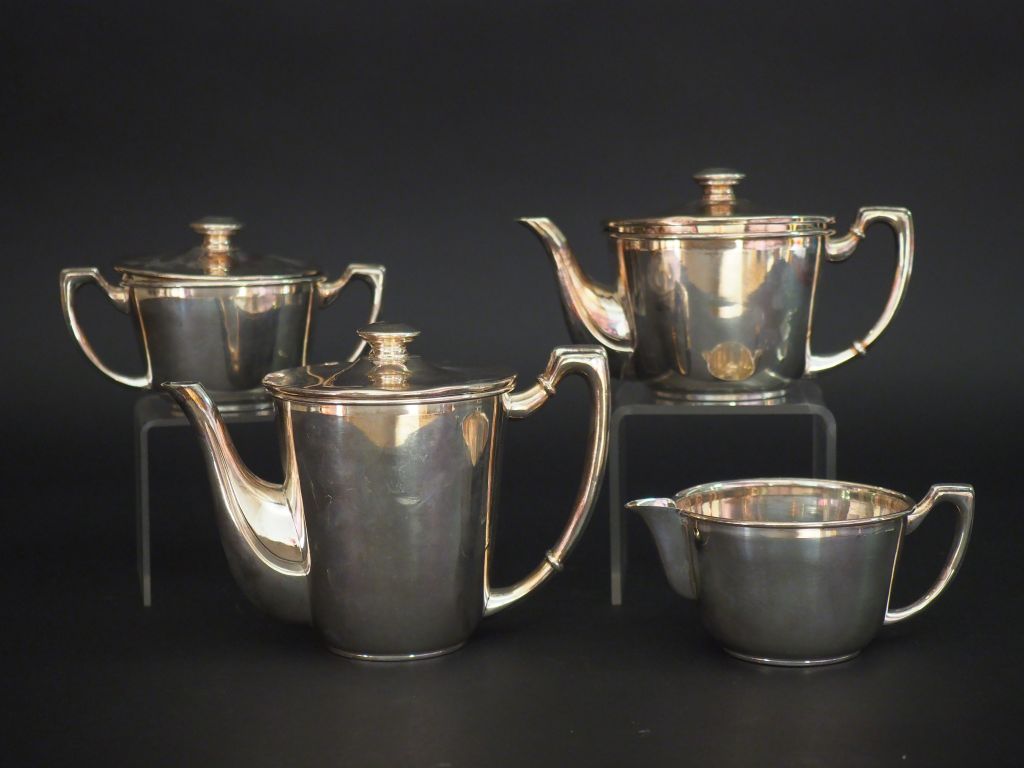 Service à thé et à café quatre pièces en argent espagnol. Comprenant : - une théière - une cafetière - un pot à lait - un sucrier Poids. 609 g