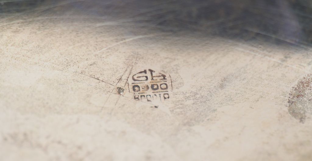 Service à thé et à café quatre pièces en argent étranger 900 millièmes. Comprenant : - une cafetière - une théière - un sucrier - un pot à lait Poids. 1582 g On y joint une petite tasse à anse en argent étranger 900 millièmes. Poids. 67 g
